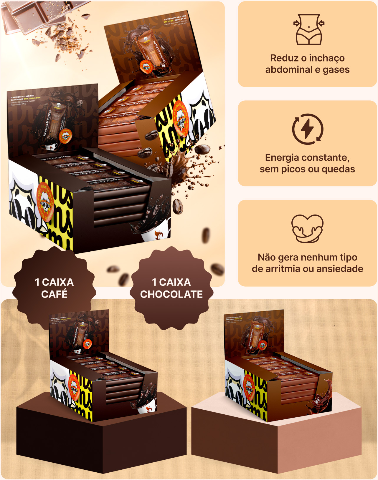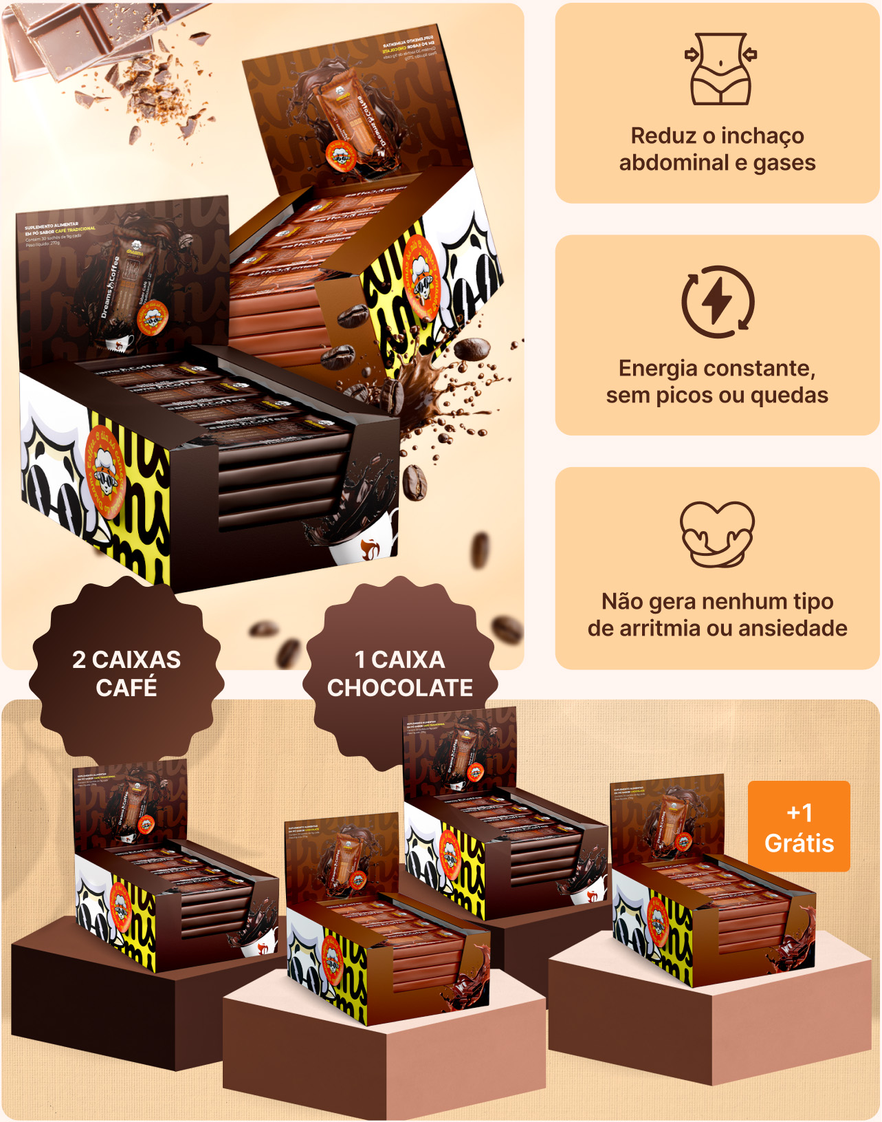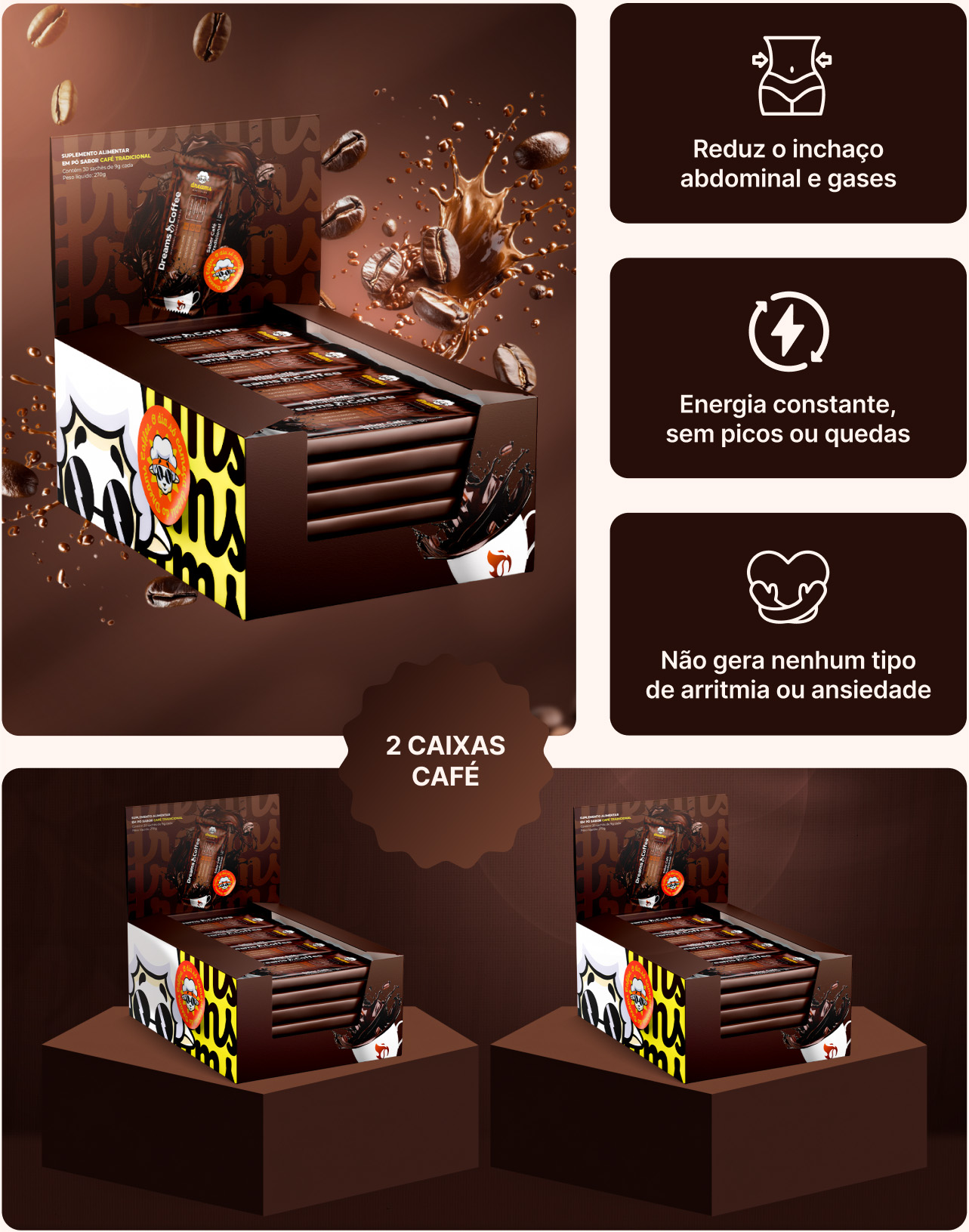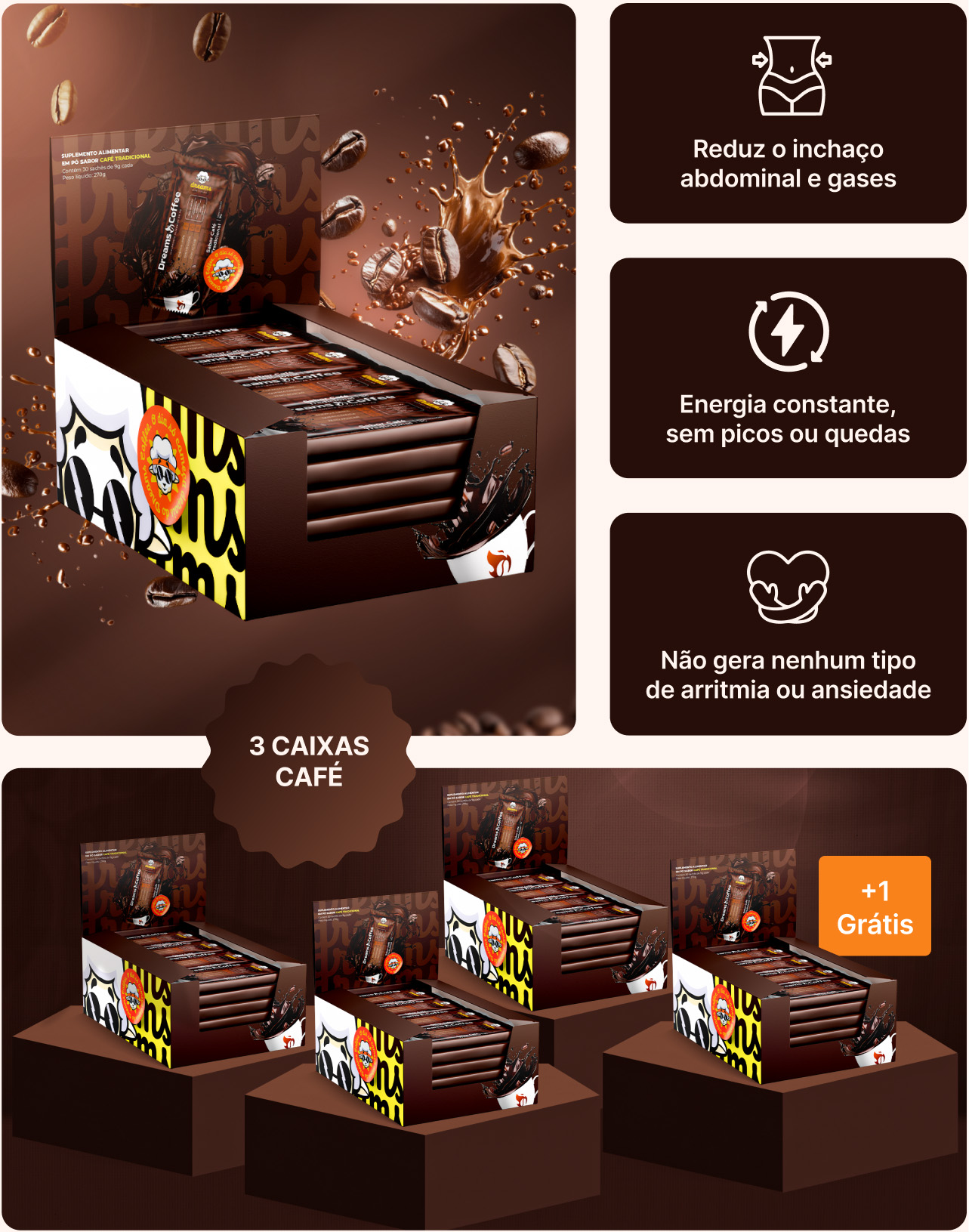 O Dreams 3.0 não é uma solução milagrosa para o emagrecimento. Ele é um café solúvel termogênico com diversas propriedades que irão potencializar seu processo de emagrecimento e também te dará mais energia e foco ao longo do seu dia.